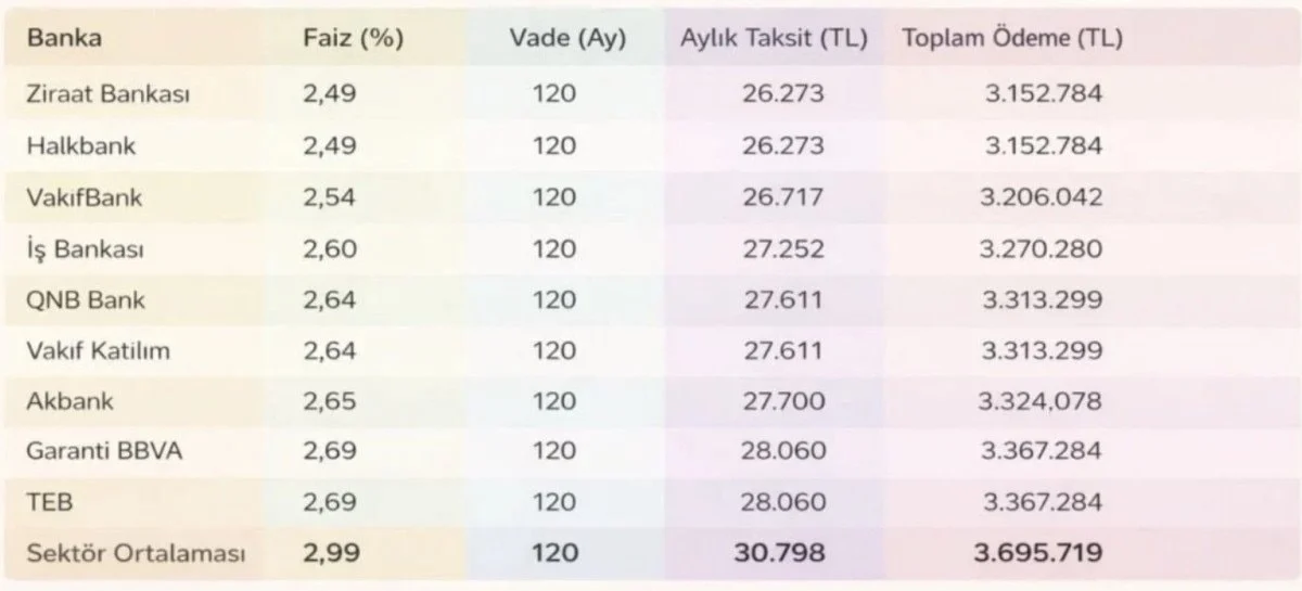 Bu düşüş, hem aylık taksitleri hem de toplam geri ödeme tutarını ciddi şekilde aşağı çekti.